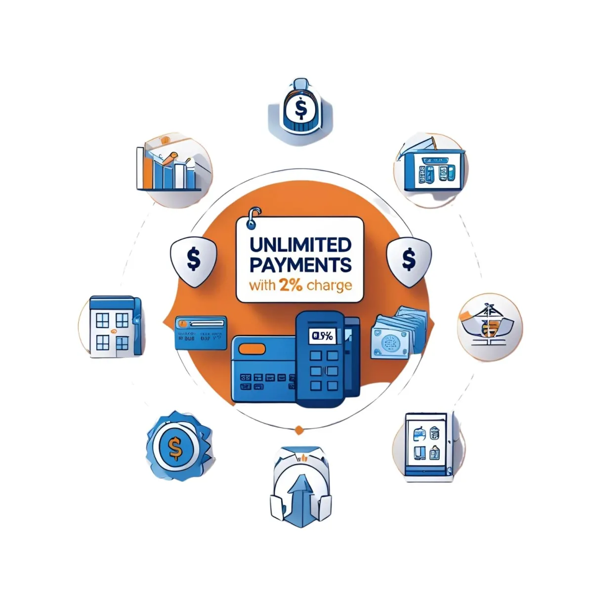 Activate payment gateways in minutes and enjoy industry-low processing charges — just 2%. Supports multiple payment methods.